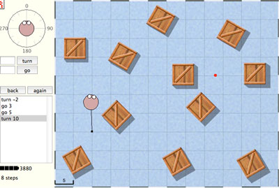 In this game you have to walk a robot to a certain place. You can control the robot's walk using turns (compass directions) and distances.