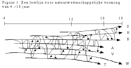 Als we de hierboven beschreven criteria verder uitwerken ligt het voor de hand om een aantal leerlijnen te ontwikkelen, waarin onder meer de noodzakelijke relaties tussen de verschillende natuurwetenschappelijke vakken worden afgebeeld.