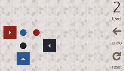 Een denkspelletje dat makkelijk begint maar snel moeilijker wordt. Het doel is elk vierkant op de cirkel van dezelfde kleur te schuiven. Als je erop tikt verschuift het blok in de richting die het pijltje aangeeft. Door de vierkanten als buffer te gebruiken kun je ze samen verplaatsen. Denk goed na voor je gaat schuiven.