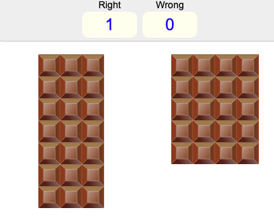 Het vraagt een (snelle) inschatting welk chocoloadeblok het grootst is. Het is een vorm van schatten in combinatie met handige tel- en vermenigvuldigstrategieën